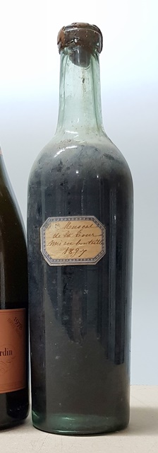 Le Bonnes Mares 93 a un bouchon qui semble neuf mais aucune indication de rebouchage n’est inscrite. Jean-Luc Pépin me dira plus tard que s’il n’y a pas d’indication, c’est que le bouchon n’a pas été changé. Le nez me plait beaucoup. Le vin semble franc et joyeux. Le parfum du Muscat 1897 me tétanise et me renverse. Il a une complexité invraisemblable car il a à la fois de la douceur mais aussi une acidité citronnée diabolique. Ce vin est l’expression de la quête permanente de l’ultime. Le bouchon très court comme celui des Chypre 1845 est d’un liège parfait. Je rebouche tout de suite la bouteille pour que ce parfum unique ne s’évapore pas.