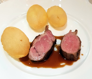 La noix de ris de veau est d’une grande qualité. Le Volnay Clos des Ducs Domaine Marquis d’Angerville magnum 1992 qui avait des accents un peu « les pieds dans la glaise » se présente sous un jour complètement différent. Il éclate de jeunesse et l’effet magnum lui donne une générosité rare. C’est un jeune chevalier conquérant qui ne doute pas de la victoire. Il est riche, gouleyant et pétulant.