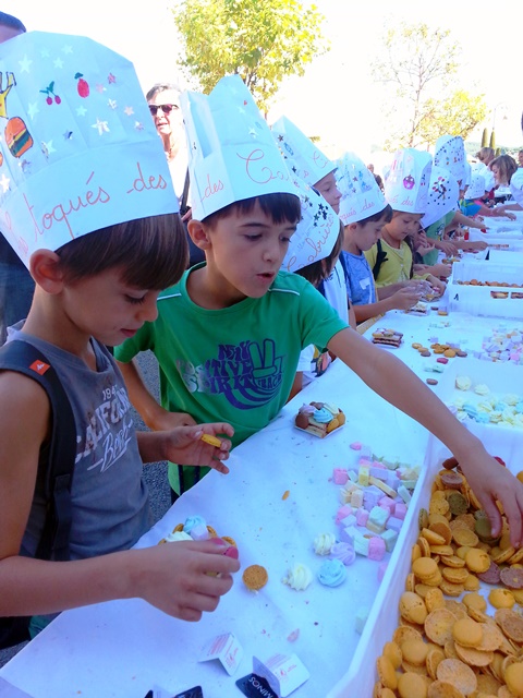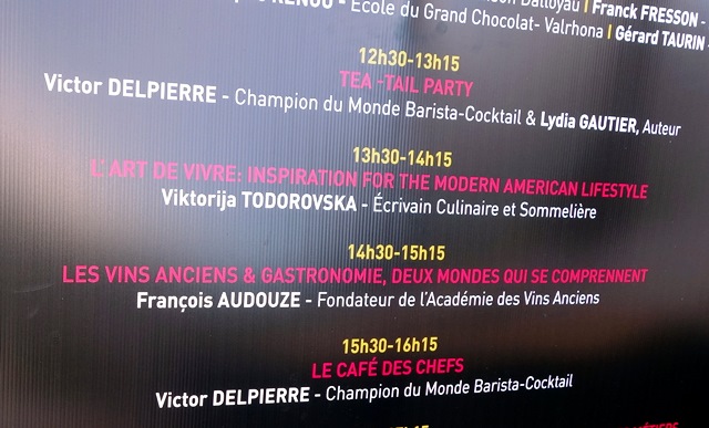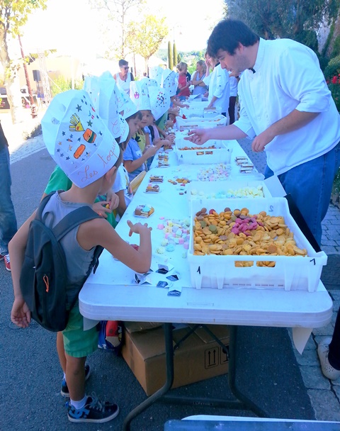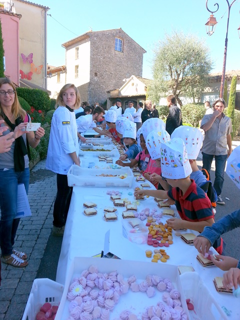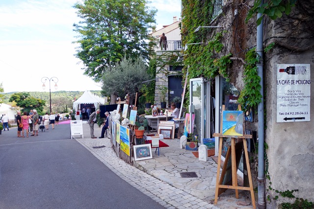 Avant le dîner je vais me promener dans la ville haute de Mougins où sont installés des dizaines de stands offrant des produits de gastronomie. Il y a en effet sur trois jours les Etoiles de Mougins un grand festival de gastronomie internationale où se rendent des dizaines et des dizaines de chefs et de pâtissiers qui expliquent et exécutent leurs recettes devant des amateurs. C’est à l’occasion du dixième anniversaire des Etoiles de Mougins que l’on m’a proposé de faire un dîner. Pour coller à ce chiffre anniversaire, ce dîner sera de dix personnes et de dix vins.
