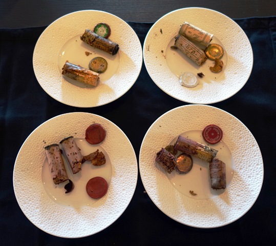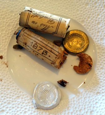 Après une sieste salutaire, je reviens vers 16h30 au restaurant Paloma pour ouvrir les bouteilles du dîner. Florent, qui deviendra dans quelques jours le chef sommelier du Paloma mais n’est pas encore en poste sera entièrement affecté ce soir à notre table, attention de Nicolas Decherchi que j’apprécie beaucoup. Pendant la séance des ouvertures, deux bouchons sont tellement collés au verre du goulot que tirer le tirebouchon ne ramènerait que des miettes. Aussi est-ce pour la première fois dans un de mes dîners que j’utilise le tirebouchon Durand, efficace mais qui a l’inconvénient de blesser les bouchons. Il s’agit du Ausone 1979 et de l’Yquem 1960 dont les bouchons, si je n’avais pas utilisé cet ustensile, seraient venus en charpie. Les odeurs les plus belles sont celles du Haut-Brion 1950, du Chambertin 1964 et de l’Yquem.