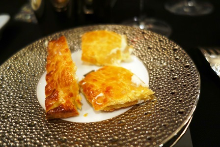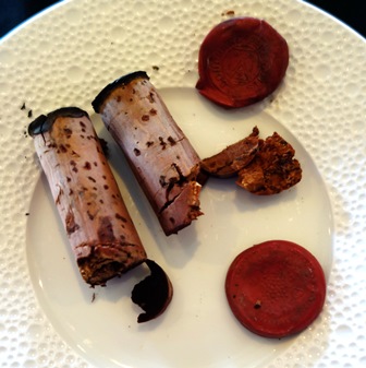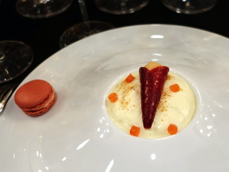 On voit à l’exposé des plats que le chef n’a pas toujours réussi à lutter contre son envie de complexifier les plats par des saveurs qui peuvent être difficiles pour les vins anciens. Mais il faut noter qu’il a fait des efforts louables dans ce sens.