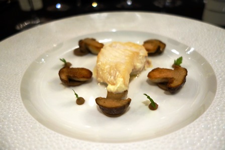 Sur les plats qui suivent nous aurons à chaque fois deux vins. La langoustine est une merveille de précision de cuisson. Le Château Laville Haut-brion 1976 a une couleur d’un jaune à peine doré, d’une grande jeunesse. Ce vin est à un stade de sa vie où on ne lui voit aucune trace d’âge. Il est épanoui, cohérent, équilibré, avec une acidité dosée parfaitement. Ce vin est un régal.