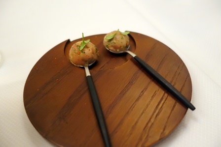Le 195ème dîner de wine-dinners se tient au restaurant Pages. J’y ai organisé beaucoup de dîners privés, et c’est le premier dîner de wine-dinners en ce lieu que j’apprécie pour la cuisine élégante du chef Teshi. Nous nous sommes rencontrés il y a une semaine pour mettre au point le menu et l’adaptation des recettes aux vins.