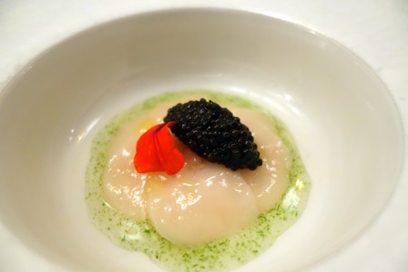 Le menu du chef Ryuji Teshima dit Teshi est ainsi composé : Saint Jacques et caviar de Sologne / Ormeau et truffes Noires du Périgord / Tourte de langoustine / Pigeon, Feijoa / Bœuf de Galice 85 jours, Simmenthal 30 jours de maturation, bœuf Ozaki poêlé sur la fonte et sur le Bincho / Stilton / Tarte aux pommes à la bergamote.
