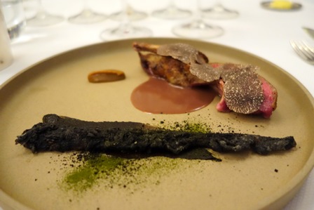 Le pigeon est un bijou de finesse et de tendreté qui convient parfaitement aux deux bordeaux délicats. Le Château Haut Brion 1er Grand Cru Classé de Graves 1967 est d’un équilibre rare. Il est courtois, racé, et montre qu’il est grand. Il est tout velours et truffe.