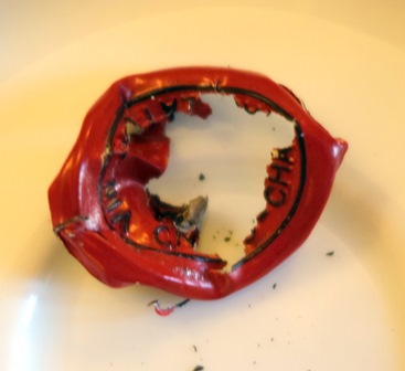 le bouchon du Haut-Brion 1924 est venu déchiré, car coincé par une surépaisseur de l’intérieur du goulot