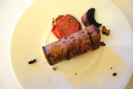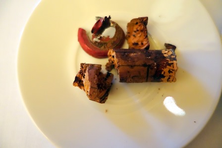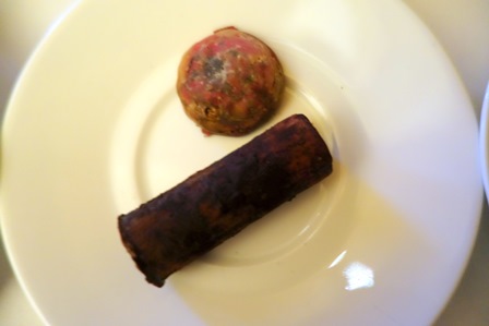 Le Champagne Bollinger Grande Année 1979 évoque pour certains le chocolat et le cacao. C’est un vin vif, cinglant et noble que je trouve plus équilibré que le Krug 1979 qui a été bu au dîner de Londres d’il y a deux jours. Il a une longueur et une noblesse qui le font aimer et de belles suggestions de noix et de noisettes.