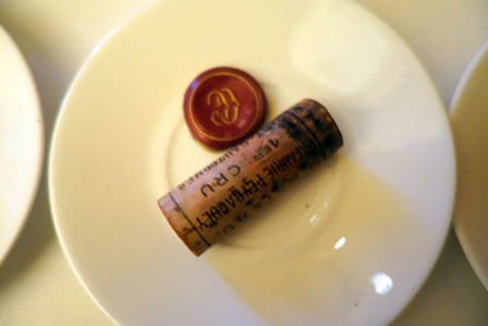 Le Châteauneuf-du-Pape Michel Bouchard 1959 est servi quelques minutes après les deux vins bourguignons. Il est solide et joyeux mais il ne peut lutter avec leurs complexités. Il prouve seulement que les Châteauneuf-du-Pape savent vieillir et garder leur potentiel de plaisir. Et l’accent de garrigue et de romarin est bien agréable à écouter à ce moment du repas.