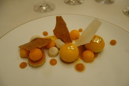 Le menu créé par Alain Solivérès est : copeaux de jambon Bellota / croustillant de langoustine en aigre-doux / noix de coquilles Saint-Jacques, cresson et céleri / ravioli de foie gras, émulsion de morilles / simple pastilla de pigeon, carottes nouvelles au cumin / médaillon de veau aux morilles / mangue, vanille.