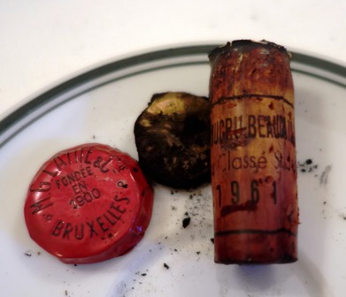 Le Château Ducru-Beaucaillou 1961 mis en bouteille par un négociant belge qui porte le doux nom de Lafite est un vin au parfum très fort et conquérant. Il y a de la truffe dans ce vin très riche. Il est guerrier. Il va créer une association passionnante avec le pomerol.