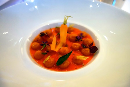 Le Champagne Salon 1990 est puissant et même très puissant. Il est vineux sur des notes de miel. Il est très opulent, plus encore que le Salon 1990 que j’ai bu il y a une semaine. J’étais venu il y a quelques jours essayer la recette de l’entrée à la carotte qui constituait pour moi une énigme. Alain Pégouret m’avait dit que ce plat marche très bien avec le champagne. J’ai donc accepté de l’essayer et c’est absolument superbe, le champagne gagnant en largeur et en volume en bouche. C’est un grand champagne.