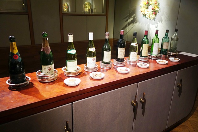 Le Champagne Brut Imperial Moët & Chandon 1952 est pris dans la bibliothèque. Il est d’un confort extrême, chaleureux, large, montrant qu’il a de l’âge puisque son goût est celui d’un champagne déjà ancien avec une bulle quasi inexistante mais un joli pétillant actif. Il est chaleureux et généreux et un amuse-bouche tiède en forme de cromesquis délicat au goût discret de truffe blanche lui convient.