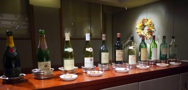 Nous sommes enfin neuf dans la petite salle appelée bibliothèque dont les armoires vitrées des quatre murs regorgent du plancher au plafond de vins prestigieux. Il y a quatre femmes dont les trois américaines que je connais et une anglaise qui accompagne un finlandais actionnaire du club. Un autre anglais est aussi actionnaire du club, un anglais dont la tenue évoque les festivités de Noël avec des représentations de la Vierge Marie d’inspiration russe, le journaliste Dan et moi. Pour deux américaines, c’est le cinquième dîner auquel elles assistent, pour le finlandais, c’est le second. Les autres sont nouveaux.