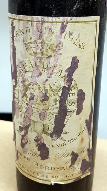 Mais à côté de lui, le Château Gruaud-Larose Sarget 1928 d’un niveau tout-à-fait étonnant dans le goulot a une robe sang de pigeon d’une rare beauté. Le vin est élégant. Il est vif, rond et on sent qu’il apporte un peu plus que le margaux. L’année 1928 est tellement exceptionnelle que ce vin serait considéré à l’aveugle comme un vin des années 60. Ce vin racé doit être associé au mot « élégance » qui lui convient parfaitement. C’est lui qui aura le plus grand nombre de votes : 8 sur 9 possibles. On a du mal à imaginer qu’à presque 90 ans il ait cette prestance.