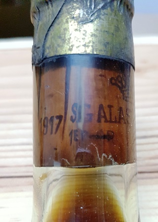 Et notre palais est fin prêt, ce que je souhaitais, pour accueillir une merveille absolue, le Château Sigalas Rabaud Sauternes 1917. Sa couleur est noire, ou caramel. Alors que dans la bouteille le vin est opaque, dans le verre il est joliment doré. Son parfum est à se damner. Plus que d’autres j’ai les yeux de Chimène pour les vieux sauternes et là je suis gâté. Le parfum est si complexe avec des fruits exotiques, de la mangue mais aussi du poivre, des épices et des fruits d’automne. Je pourrais rester des heures enivré par ce parfum. En bouche le vin est un soleil. Le dessert à la mangue est très conforme au goût nécessaire pour le sauternes mais ce qui lui manque c’est la mâche. C’est un dessert que l’on grignote plus qu’on ne le mord. J’aurais aimé des dés de mangue beaucoup plus épais et charnus pour que l’on morde avant de déguster le nectar absolu centenaire à la longueur infinie.