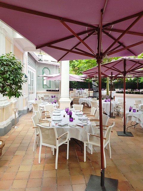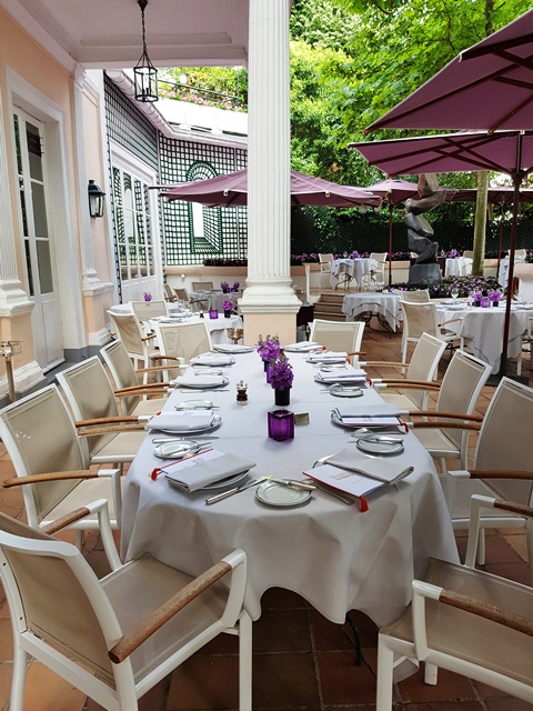 Le service des vins par Ghislain a été parfait, le service de table irréprochable. Nous avions une magnifique table dans le jardin du restaurant Laurent qui est certainement la plus belle terrasse parisienne.