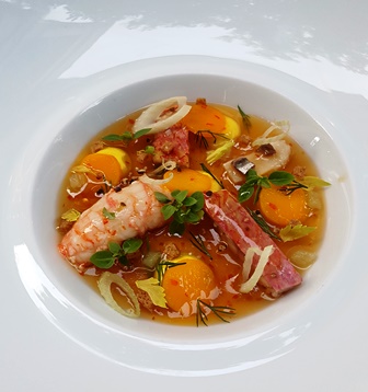 Alain Pégouret a fait une cuisine de très haut niveau que les guides devraient couronner plus qu’ils ne le font. Le plat le plus extraordinaire est la bouillabaisse d’une sensibilité extrême. Le rouget était le compagnon idéal pour le Palmer 1961. Les autres plats ont été simplifiés comme il convient pour les dîners de vins anciens sauf pour les accompagnements de la mangue qui n’apporteraient rien. Mais c’est à la marge tant tout fut bon, élégant, goûteux et convaincant.