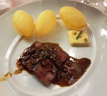 Le Château Rayas Châteauneuf du Pape 1988 a la malchance de passer juste après le bourgogne merveilleux. Il fait un peu rustaud et simple alors qu’en une autre circonstance il brillerait. Sur la délicieuse viande rouge il est très adapté mais nous avons encore en tête la musique aromatique de la Romanée Conti.