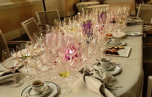 Le 216ème dîner de wine-dinners se tient au restaurant Laurent. Le nombre de participants a oscillé plusieurs fois entre dix et onze dans les deux heures précédant le repas. Bravo à la flexibilité du restaurant qui s’est adapté en permanence aux différentes phases de ce suspense. En définitive nous sommes onze, avec une écrasante majorité masculine. Tous se connaissent. Seuls trois participants sont nouveaux.