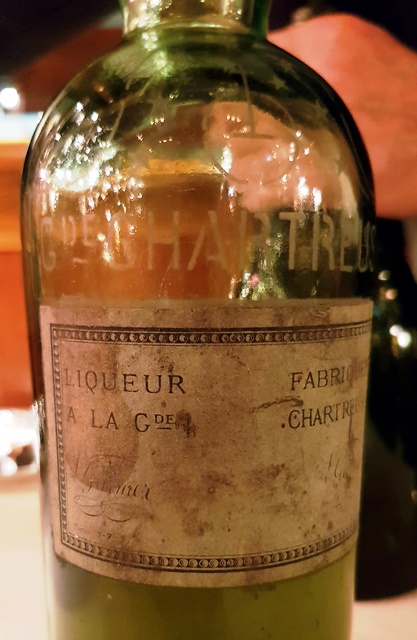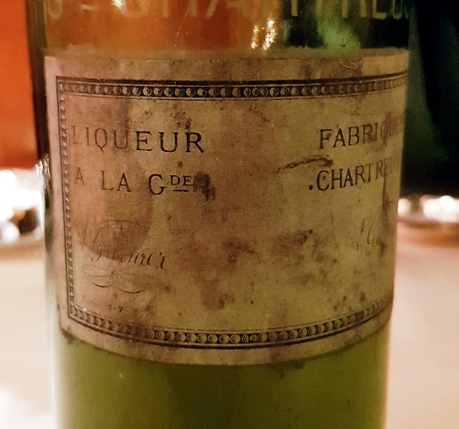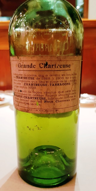 La cuisine a été remarquable, très lisible, très adaptée aux vins. Le service des vins par Baptiste a été parfait. Le service des plats a été discret et aérien. Nous avons même eu la chance de goûter, offerte par le restaurant, une Chartreuse Verte du début des années 40, magistrale et très forte, d’un degré d’alcool imposant au sucré diabolique.