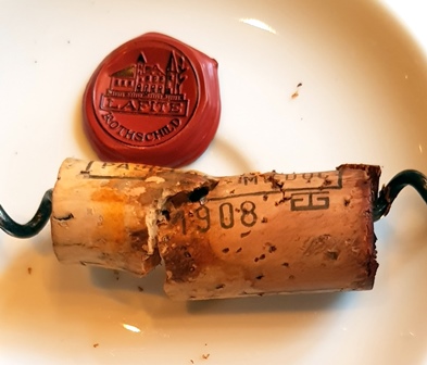 Le Château Lafite-Rothschild Pauillac 1908 avait à l’ouverture un nez marqué par un fruit de toute beauté. Le nez est encore impressionnant mais en bouche il y a une acidité sensible que le nez ne laisse pas imaginer. En sachant lire entre les lignes, on trouve un Lafite de grande race et de belle richesse mais l’acidité limite un peu le plaisir. Fort heureusement la divine langoustine et sa bisque apportent de la douceur à ce vin de haute lignée. Il est possible que ce soit le rebouchage en 1990 qui ait apporté cette acidité.