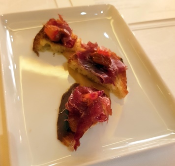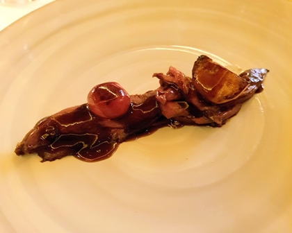 On me fait goûter en premier tous les vins et lorsque je bois la première gorgée du Champagne Salon Le Mesnil  1964, c’est comme si j’ouvrais les portes de Paradis. La couleur est d’un ambré clair, le nez est tétanisant de perfection percutante et le champagne est tout simplement divin. S’allument en moi toutes les références que j’ai des champagnes Salon et l’on est au firmament de ce que peut offrir ce divin champagne. L’entrée au foie gras est délicate mais mon esprit est au Salon, même si la palette ibérique fait briller le champagne. C’est une des plus belles émotions que j’aie eues avec Salon.