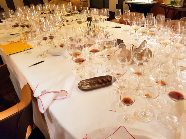 La cuisine que nous avons goûtée, maîtrisée, simplifiée parfois, a été l’une des plus pertinentes que nous ayons connues. Bravo à Pierre Gagnaire mais aussi à toute son équipe. Le service des vins par Logan a été attentif et parfait, le service de table montre une implication intelligente et motivée de toutes les équipes.  L’ambiance de la table, joyeuse mais attentive à comprendre les vins et les accords a fait de ce repas aux vins particulièrement prestigieux un des plus beaux des 222 dîners que j’ai eu l’honneur d’organiser avec de grands chefs et de grands vins.