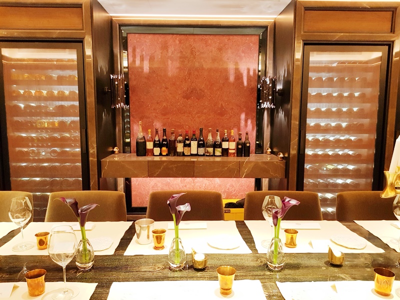 Le 226ème dîner de wine-dinners se tient à la Cave d’Exception de l’Hôtel de Crillon. Il s’agit d’une grande salle dont les murs sont des vitrines où les plus grands crus sont exposés, avec une luminosité qui ne nuit pas à leur conservation. Lors du dîner à la manufacture Kaviari j’avais voulu explorer le mariage entre de vieux alcools et des champagnes sur des plats au caviar. Dans ce dîner, à deux moments, nous allons explorer la cohabitation de très vieux sauternes avec des champagnes plutôt doux sur des plats. C’est avec le chef Christopher Hache que j’ai envie de le faire car j’ai le souvenir de beaux dîners que nous avons faits avant la rénovation de l’hôtel de Crillon.