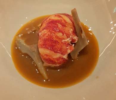 Le Château d’Yquem 1918 va maintenant cohabiter avec le Champagne Krug Collection 1962 sur le merveilleux homard. Le Champagne très rare est complétement différent du Krug Private Cuvée de l’apéritif. Le 1962 est vif et d’une grande profondeur. C’est un champagne intense et docte. Il inspire le respect. L’Yquem 1918 est d’une rare élégance. C’est un Yquem très féminin qui se promène en faisant virevolter ses crinolines et ses vertugadins. La démonstration est faite qu’un grand champagne noble peut cohabiter avec un élégant sauternes. Ce qui est impressionnant c’est que la trace de l’Yquem en bouche ne s’éteint jamais.