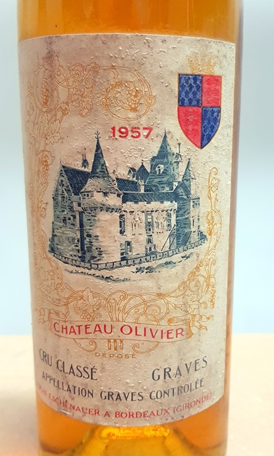 Trois vins blancs vont accompagner les deux services du saint-pierre. Que j’aime quand on a le produit pur dans l’assiette ! Le Château Olivier blanc 1957 avait à l’ouverture un nez assez doux, suggérant un vin au botrytis affirmé. Le vin est riche et plaisant, gouleyant et franc et la bordelaise de notre table l’adore. C’est un vin joyeux.