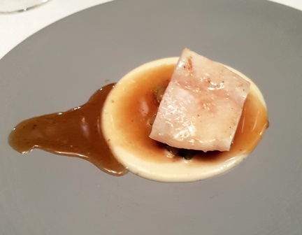 J’ai bien fait de conseiller aux convives d’écouter le message du vin car le Champagne Gonet Père & Fils 1961 fait un contraste important avec le précédent champagne. Il fait plus assagi, plus discret offrant des saveurs d’automne que les champignons soulignent. C’est le plat qui nous fait aimer ce blanc de blancs de Mesnil-sur-Oger, la Mecque du blanc de blancs.