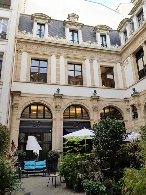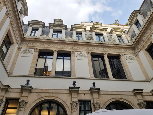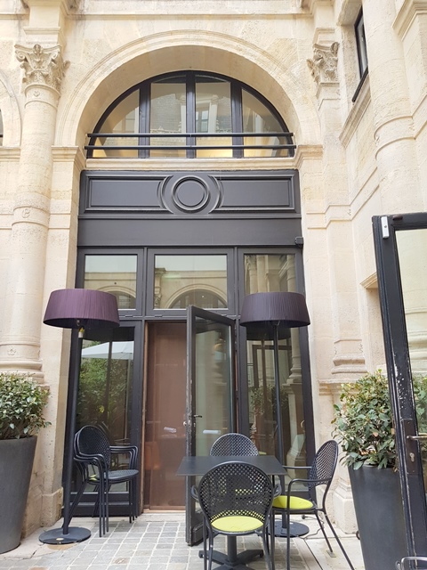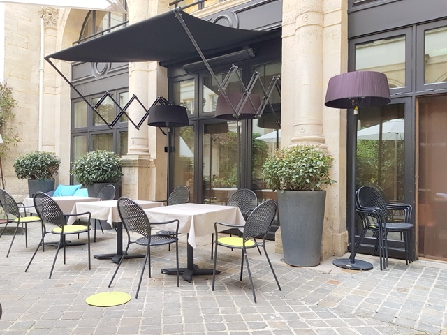 Dans la salle très étroite, la table qui nous est réservée est toute en longueur, selon un plan ou le nombre de sièges pour chacun des côtés du rectangle est : 5 – 1 – 5 – 0. Un tel plan tout en longueur créera trois zones de discussion, à une aile, à l’autre et au centre. Or il est intéressant que tout le monde parle avec tout le monde. Il fait beau, pourquoi ne pas utiliser les tables qui sont dans la cour pour créer une table beaucoup plus carrée qui sera selon un plan : 4 – 2 – 3 – 2. Ça ressemble à la construction du plan de jeu d’une équipe de football mais il s’agit du nombre de sièges par côté du rectangle de la table. Benjamin regarde la météo sur son Smartphone et il y a 30% de chances de pluie. Benjamin affirme : « à 30% on peut prendre le risque ». On dresse donc la table avec quatre verres pour chaque place, et les premières gouttes de pluie tombent. Dans la cour il y a un grand store et deux grands parasols. Ces trois abris ne permettent pas de couvrir la table et les sièges. Le chef Akrame arrive et dit : « dîner à l’intérieur ». Mais la forme de la table est franchement dissuasive. Benjamin regarde à nouveau la météo avec Alissa et le jeune serveur Marc qui fera un service de grande qualité des plats et aussi des vins et il nous dit : « c’est le dernier nuage vu du ciel, et après ce nuage il n’y aura qu’un ciel dégagé ». La tentation est donc grande de dîner à l’extérieur. Mais pour être sûr que tout le monde soit à l’abri sous ses toiles de surfaces insuffisantes, il faut faire tourner la table de 90°, ce qui protégera mieux nos têtes. Il faut donc débarrasser la table et la dresser à nouveau. L’implication de l’équipe du restaurant est exceptionnelle. Pendant que toute l’équipe s’anime je vois un autre site météo ouvert par un des convives arrivé en avance qui indique : « de 20h à 23h, pluie ». Changer à nouveau n’est plus possible. Nous serons dans la cour.