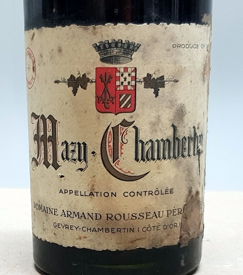 Le pigeon accompagne deux bourgognes, et là aussi on a comme pour les montrachets et les bordeaux deux vins très différents. Le Mazy Chambertin Grand Cru Domaine Armand Rousseau 1966 a un nez diabolique à réveiller les morts. C’est l’affirmation de la Bourgogne la plus terrienne, travailleuse, les pieds dans la glaise. C’est une Bourgogne qui prend aux tripes et en bouche on a un vin de plaisir, nature, diaboliquement séduisant.