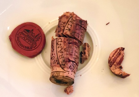 Le Château Lafite-Rothschild 1878 est comme le Charles Heidsieck 1955 seul sur un plat, sur le foie gras poché. Ce vin a été reconditionné au château en 1990 avec les marques qui attestent de cette opération. Le vin a une belle couleur très jeune. Le nez est intense. Il est incroyable de finesse, de noblesse et d’accomplissement. Il paraît si naturel. J’en ai parlé discrètement avec Pierre Lurton, qui est d’accord avec moi, l’âge se sent avec un léger goût viandeux probablement latent et surgi lors du rebouchage, ce qui signe l’authenticité du vin et ne nuit pas au plaisir au point que ce vin sera le seul à figurer sur les douze feuilles de vote, consacrant sa première place des vins du repas. L’accord avec le foie gras est magique et la douceur met en valeur toutes les subtilités du vin. Nous avions eu au 200ème dîner un Lafite 1898 superbe. Celui-ci est au moins au même niveau, peut-être un peu plus romantique et délicat. C’est un vin d’anthologie de 140 ans.