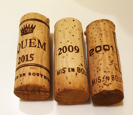 trois bouchons : le 1937, le Malaga 1872 et l’Yquem 1891