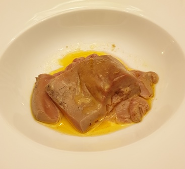 Dans une discussion avec quelques convives j’avais dit que le concept d’âge n’existe pas. Si un vin arrive à survivre à tous les accidents de parcours qui affectent le bouchon, alors il est sans âge. On dirait que le Château Bouscaut Grand Cru Classé de Graves Magnum 1929 m’a écouté car il est invraisemblable. Sa couleur est sang de pigeon très foncé, ce qui veut dire qu’il n’a pas la moindre trace de tuilé. Il est d’une fraîcheur invraisemblable. Voilà un vin qui rafraîchit, dense, cohérent sans le moindre défaut. Le boire désaltère mais aussi emmène sur un champ de saveurs infinies. Je suis aux anges. Ce vin est un miracle. Le foie gras poché n’est pas vraiment poché et n’a pas une mâche qui avantage le 1929, même si le goût du foie est bon. Ce 1929 est une merveille et sera mon préféré et de loin.