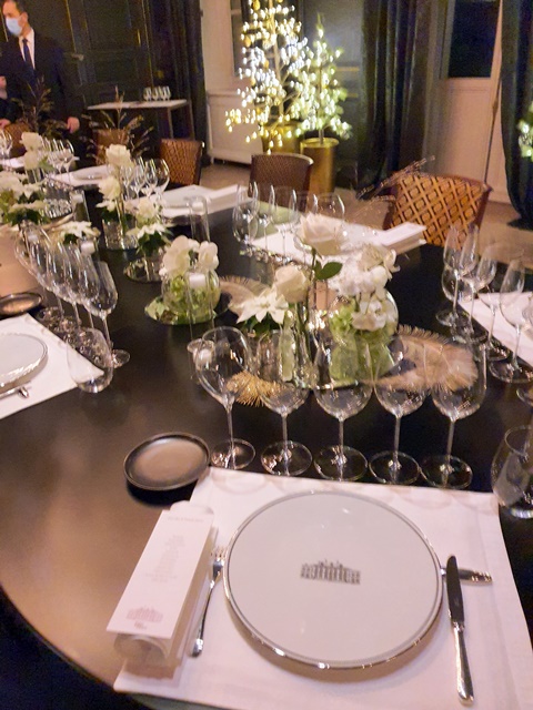 Nous serons douze au dîner dont Didier Mariotti qui nous reçoit avec un cadre de Moët-Hennessy, deux amies américaines fidèles de mes dîners et qui avec deux autres amis avaient participé au 196ème dîner tenu en ce lieu. Un seul convive participe à son premier dîner. Un chinois, deux chinoises et deux américaines font partie du groupe qui parlera le plus souvent en anglais.