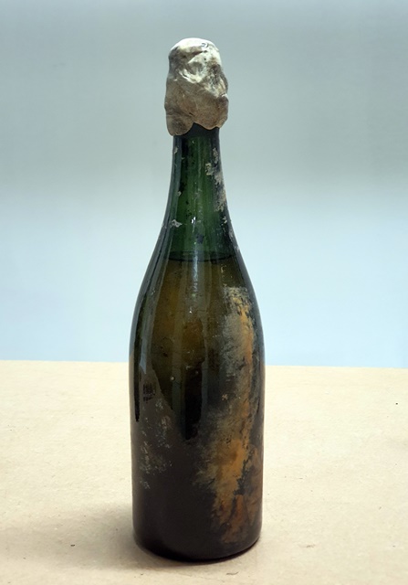 Le Champagne Heidsieck Monopole (American Taste) 1907 trouvé en Mer Baltique est d’une couleur qui pourrait rebuter car elle est un peu grise et les derniers verres ont un peu de dépôt. Il y a encore de la bulle ce qui est étonnant et le champagne est d’une grande énergie et d’un dosage qui ne fait pas vraiment « goût américain ». Ce qui frappe immédiatement c’est sa complexité. On voyage dans l’inconnu subtil. Comme la moyenne de la table je lui donne la deuxième place au classement des vins, car son caractère énigmatique est passionnant. Il ne ressemble à rien de connu mais il a du charme et de la conviction.