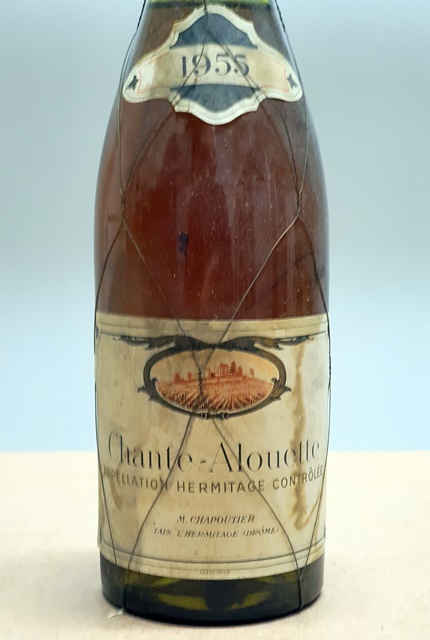 L’Hermitage Chante Alouette Chapoutier blanc 1955 est très ambré. Le nez est de grande subtilité et en bouche le vin est riche et opulent avec une grande personnalité. Il est gourmand et charmeur, très typé. Les Saint-Jacques sont copieuses et magnifiquement cuites. Un régal.