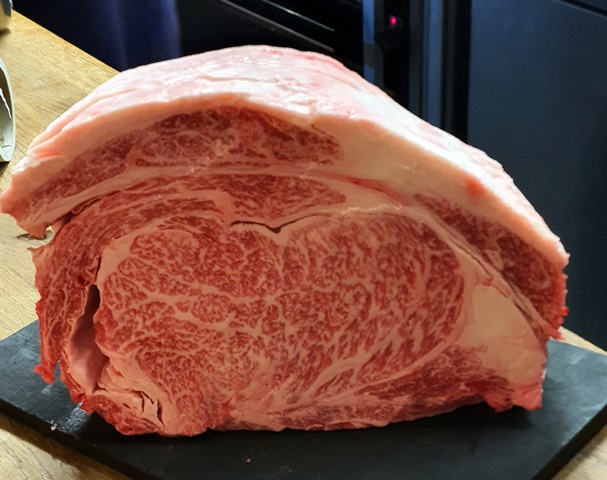 Mon voisin qui est allé à Kobé au Japon me dit que le Wagyu que nous mangeons est très nettement supérieur à tout ce qu’il a mangé sur place. C’est vrai que cette chair est un pur bonbon. Et le Chambertin Louis Latour 1961 très représentatif de son appellation, riche, rond, équilibré, joyeux est le partenaire idéal de la viande. Ce vin solide et stable est un roc, un étalon du chambertin.