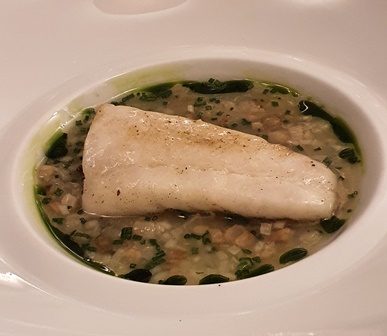 Le Meursault J.F. Coche Dury 1990 a de loin le plus beau parfum de tous les vins du repas ou du moins le plus envahissant. Le vin est grand, peut-être un peu monolithique mais droit et riche. La chair du turbot est divine et la sauce est peut-être un peu trop marquée même si elle est raffinée.