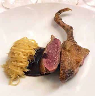 Le pigeon, pure merveille, accueille deux vins exceptionnels. Mes convives s’étonnent de la jeunesse des couleurs des deux vins de 1928. Le Château Haut Bages Libéral Pauillac 1928 est une immense surprise car son parfum est noble et raffiné et en bouche il est d’une maîtrise rare. S’il n’y avait pas l’autre Pauillac, on en ferait une vedette.