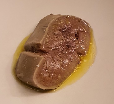 Lorsque j’avais bâti mon programme de vin, le Champagne Heidsieck Monopole (American Taste) 1907 trouvé en Mer Baltique devait être servi juste après le Krug et lorsque l’on a décidé de mettre la Romanée Conti avec le foie gras poché, j’ai imaginé que le champagne très doux irait bien avec le foie gras. Et donc ce plat accueille les deux vins. Mais en goûtant le champagne qui a beaucoup moins de dosage que des précédents 1907 que j’ai bus, il m’apparaît que le champagne risque de porter préjudice à la Romanée Conti aussi ai-je décidé que le champagne serait bu après le foie gras, sur un Saint-Nectaire de secours.