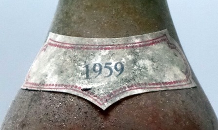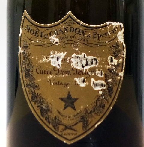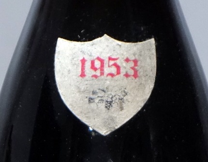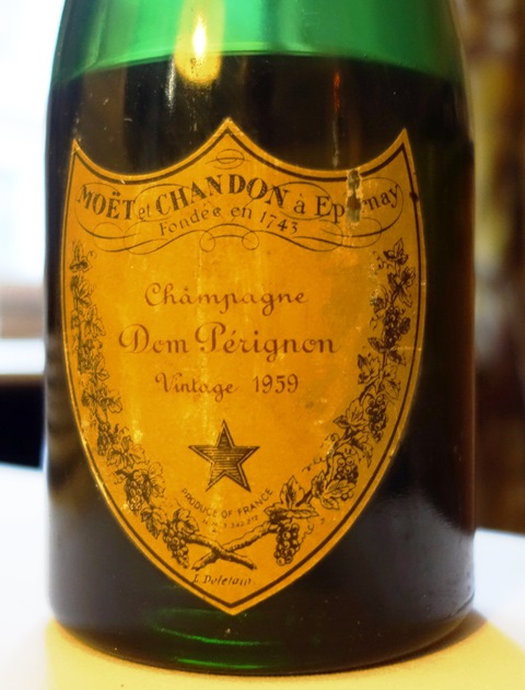 Champagne Dom Pérignon 1959 (on voit le niveau bas)