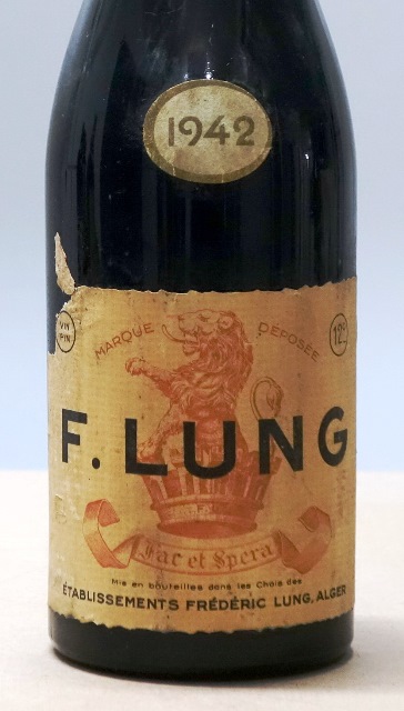 On ne pourrait pas me faire plus de plaisir que d’apporter des vins comme ce F. Lung Frédéric Lung rouge Alger 1942. Il a de fortes traces de café qui sont la marque de fabrique de ces vins des côtes de Mascara. Le vin est fort, puissant, à l’alcool sensible, et dégage une sérénité que j’adore. Il est assez sec. Notre table est gâtée.