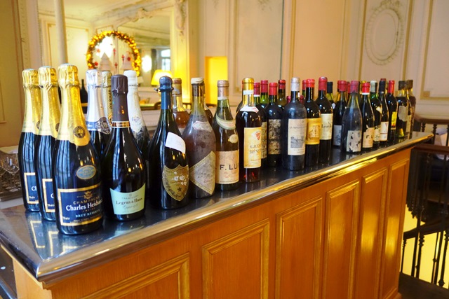 les vins sont disposés sur le bar du 1er étage par groupe et dans l’ordre pour réaliser les ouvertures