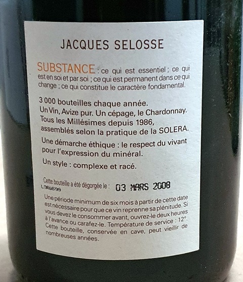Dans le magnifique salon lambrissé du restaurant Taillevent, nous trinquons debout avec le Champagne Jacques Selosse Cuvée Substance dégorgé en 2008. Ce champagne puissant à la forte acidité est d’une grande noblesse. Il interpelle tant il est conquérant. Les gougères calment son énergie.