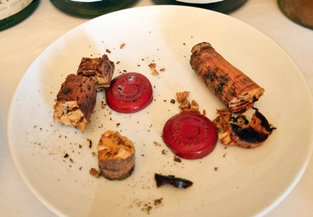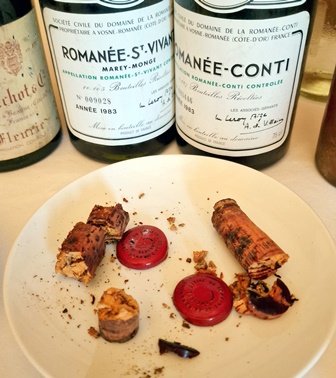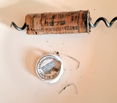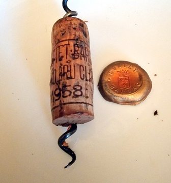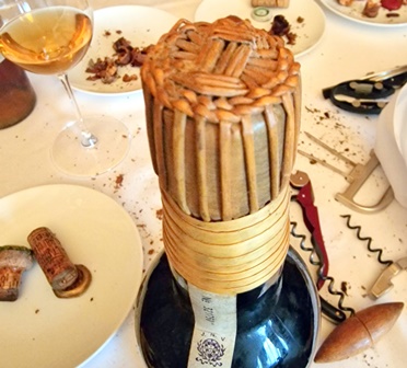 Les deux blancs secs ont des parfums prometteurs, diagnostic partagé. Le bouchon du Carbonnieux blanc 1964 se brise en de multiples morceaux, comme celui du Cheval Blanc 1934 et de la Romanée Conti 1983. Le nez du Cheval Blanc et le nez du Fleurie 1945 sont enthousiasmants. La capsule du Coutet 1958 est d’un rose orange d’une rare beauté et le parfum de ce vin, d’une douceur rare, est aussi rose orange. Le Madère 1890 n’a pas de capsule mais un chapeau tressé de tiges de roseaux du plus bel effet. Tous les parfums me sont apparus rassurants, prêts à s’épanouir du fait de l’oxygénation lente.