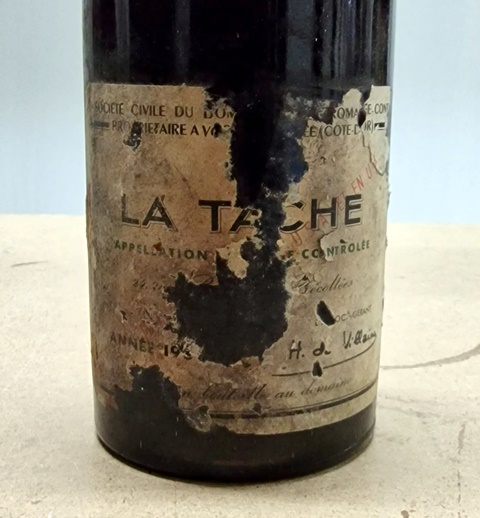 La Tâche 1969 a un bouchon qui vient entier. Le tiers supérieur du bouchon est noir, signe généralement d’une différence de température entre des lieux de stockage de ce vin. Le vin m’offre un de ces parfums qui font ma joie : cela sent la terre, le sel, la vieille armoire, mais je sais à l’avance que le vin s’assemblera, selon une évolution positive tant de fois ressentie.