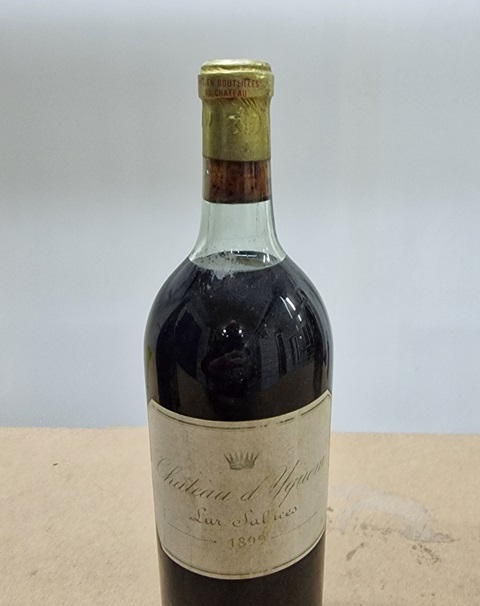 Comme si je n’avais pas assez de l’énigme de la Romanée Conti, l’Yquem 1899 se présente avec une capsule qui n’est pas frappée du chiffre du millésime. Dans ce cas, le bouchon porte une indication de l’année de l’habillage nouveau de la bouteille. Mais là, on voit un bouchon où des écritures ont existé, mais sont presque complètement effacées. Le bouchon n’a pas 123 ans, il est assez vieux, mais rien n’indique qu’il est d’Yquem. Tout indique un faux, sauf que le parfum du vin est à se damner. La couleur du vin est noire, et tout indique un très bel Yquem. Si un faussaire a fait ce vin, il l’a fait avec de l’Yquem 1899 !